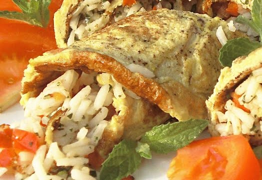 Rotolini di frittata con ripieno di riso speziato