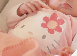 Ma che amore la tutina di Hello Kitty!! E' proprio una caramellina!! E per la torta, che dire? buonissima, peccato solo che l'uva fragola ha la pellaccia dura! Ma forse cotta, non si sente..giusto?!